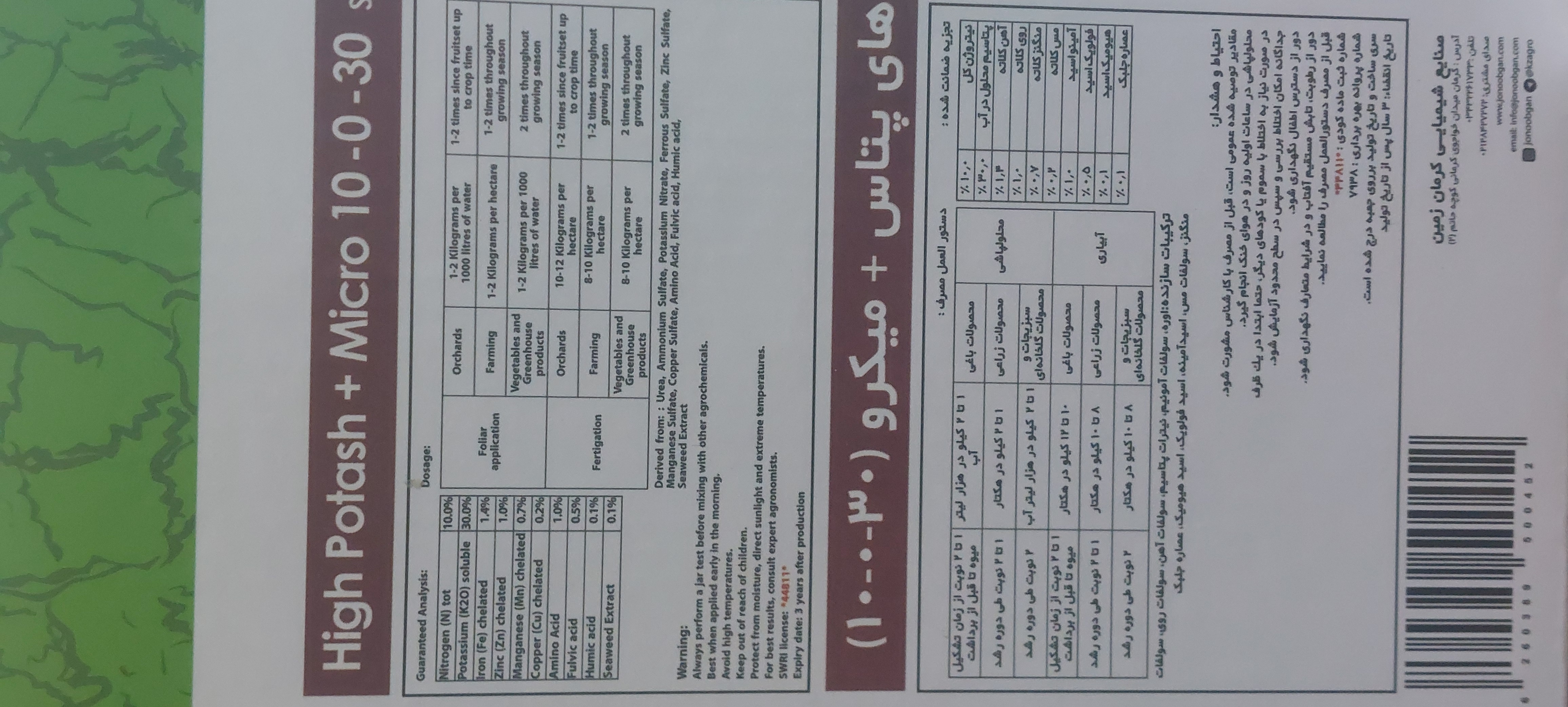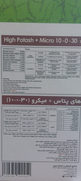 - قابل مصرف جهت اغلب کشت های زراعی و باغی به صورت محلولپاشی و آبیاری